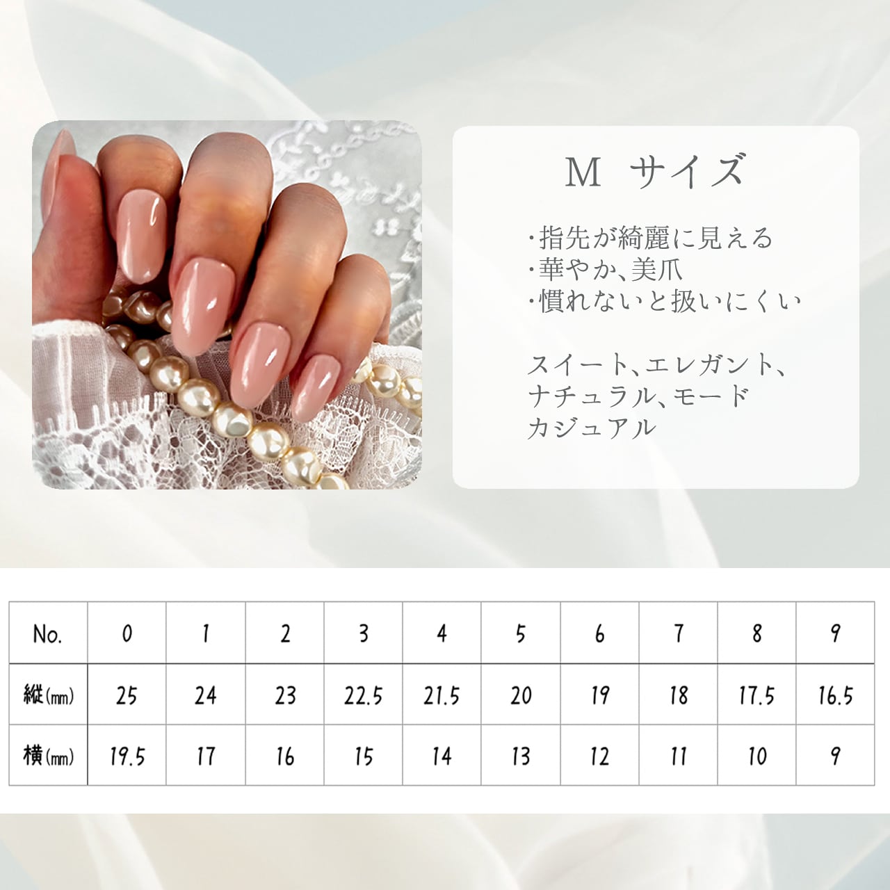 ほんのり透け感のあるベージュカラーで指先をほっそり美しく見せ、大人女性の手元にぴったりな上品ネイルチップです✨