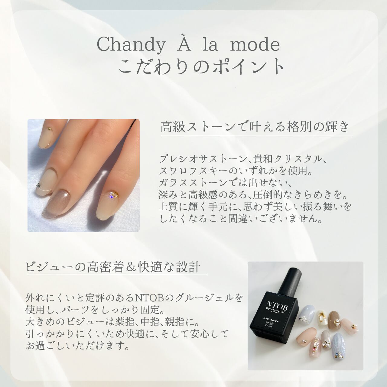 ネイルチップ装着に必要なものが揃う「はじめてセット」はこちら (https://chandylamode.base.shop/items/93281891) から♡