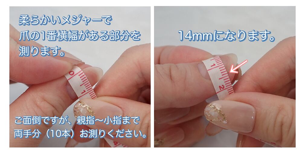 チップにはカーブがあり、サイズによってそれぞれ異なりますため、メジャーやマスキングで測る計測では、しっかり合わない可能性がございます。